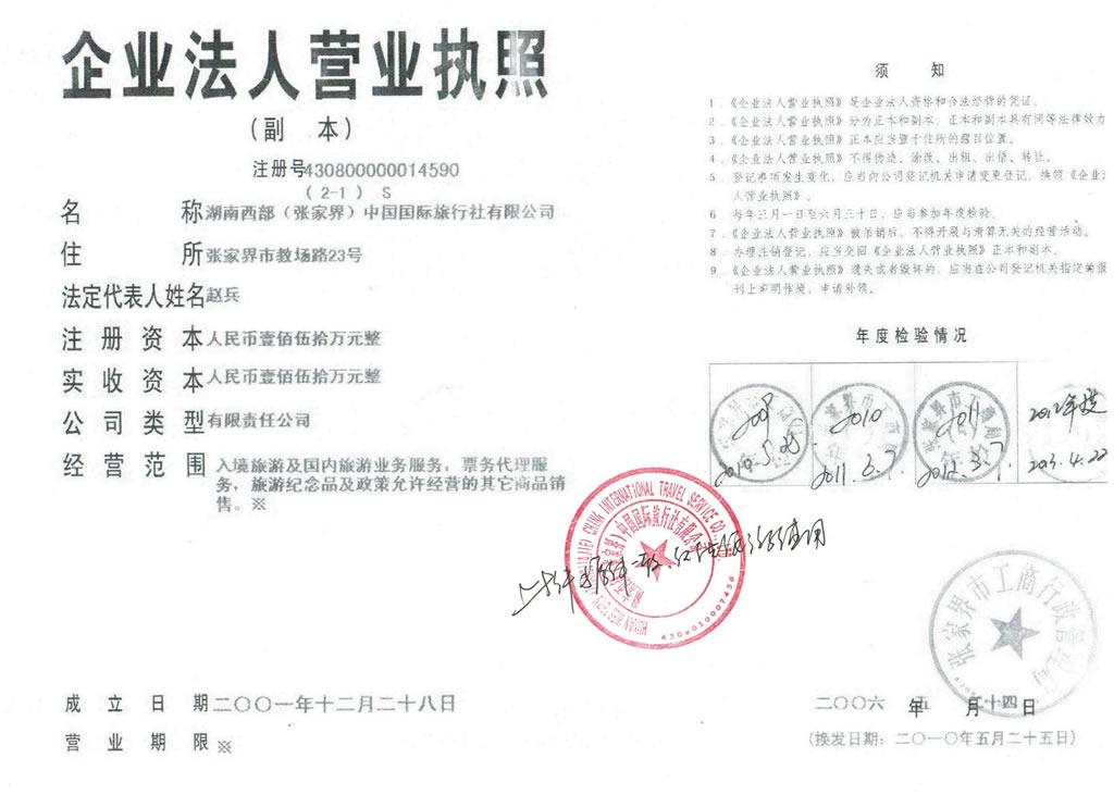 張家界旅行社信息公告