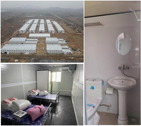 “越是艱難,越要咬緊牙關(guān)挺過去”,項(xiàng)目現(xiàn)場負(fù)責(zé)人說。在施工、采購、調(diào)度各環(huán)節(jié),國資集團(tuán)不斷創(chuàng)新,會同各參建單位想盡一切辦法為項(xiàng)目建設(shè)提速,截至2月19日,準(zhǔn)備區(qū)折疊房、緩沖區(qū)活動板房、隔離區(qū)打包房、污水處理點(diǎn)用房已安裝完成,室內(nèi)水電、家具、電器已完成90%,室外附屬工程已基本完成。已建成的折疊房和打包房,配備了空調(diào)、熱水器、淋浴房、馬桶、洗手臺、床、被單、棉被、枕頭、桌子、凳子等,必需的生活配套一應(yīng)俱全。