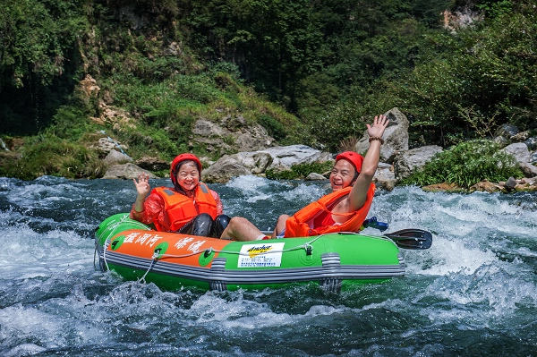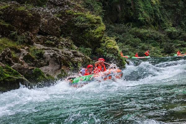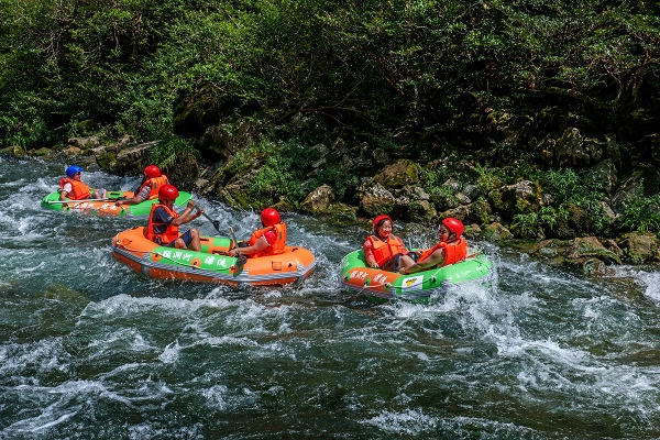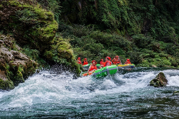 猛洞河水量豐富,河流坡降大,水急灘多浪奇,高大的峭壁直插水面,兩岸并相靠攏,形成幽深的峽谷景觀。沿河兩岸古木蒼天,蒼翠欲滴,奇石錯落,流泉飛瀑隨處可見,下游一路水碧山青,風光秀麗,野猴成群,溶洞奇特。猛洞河天下第一漂項目位于猛洞河支流,全長47公里,最精彩處位于哈妮宮至牛路河段,長約17公里。該景區(qū)兩岸多為原始次森林,蔥蔥郁郁,水流湍急,碧綠清亮,有十里絕壁,十里瀑泉,十里畫卷,十里洞天的美譽。其中有急流險灘108處,大小瀑布20處。漂流,穿急流,越險灘,闖狹谷,捕激浪,有驚無險,回味無窮。特別是哈妮宮、三角巖、雞籠門、遇仙峽(捏土)、閻王灘、落水坑、夢思峽、鯉魚剖肚、三大炮等景點,無不令人叫絕觀止。