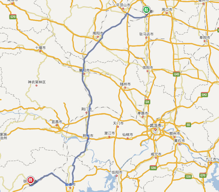 左右,沿途經過漯河——平頂山——南陽——襄陽——荊門——荊州——常德(也可以走國道經澧縣、石門縣)——慈利——張家界。