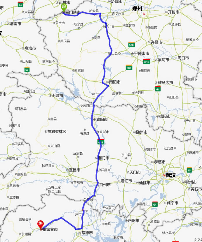三門峽去張家界自駕車自助游線路圖全程高速):