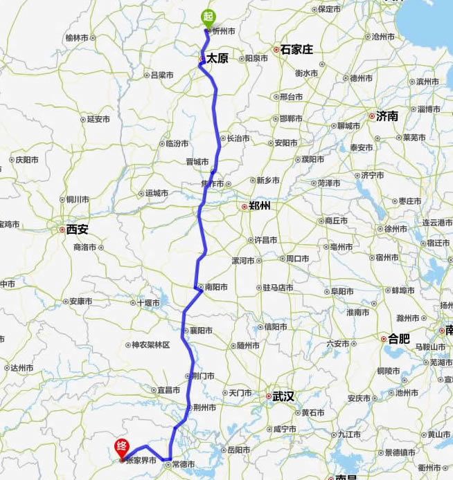忻州去張家界自駕車自助游線路圖全程高速):