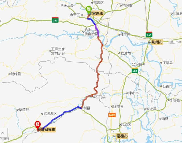宜昌去張家界自駕車自助游線路圖全程高速):